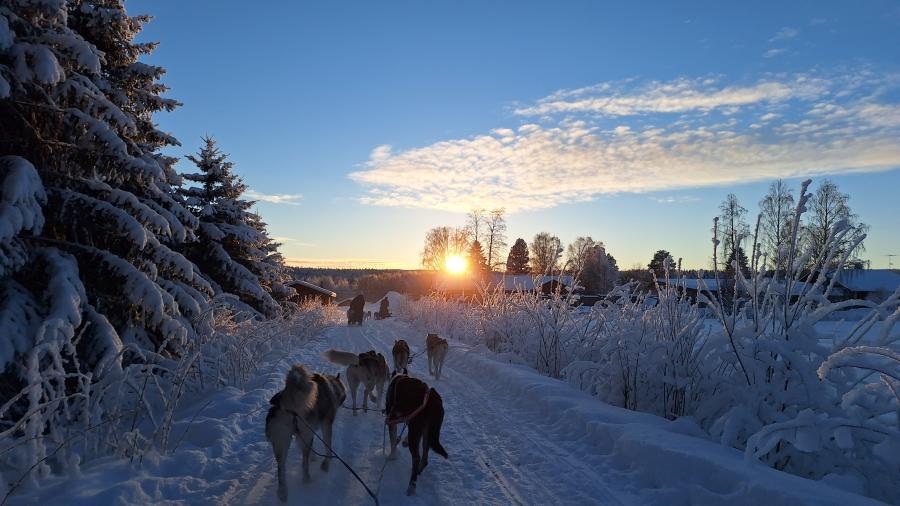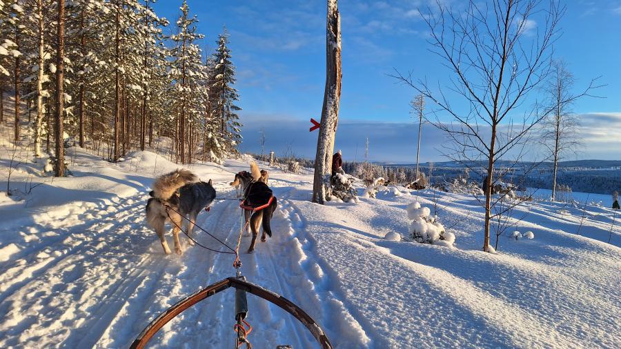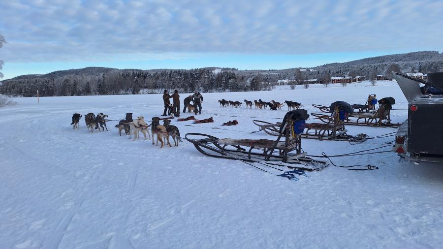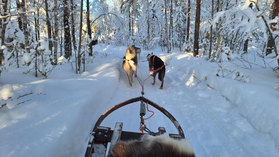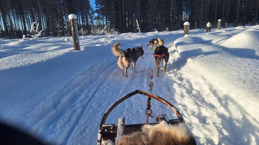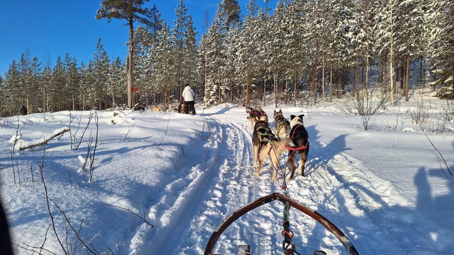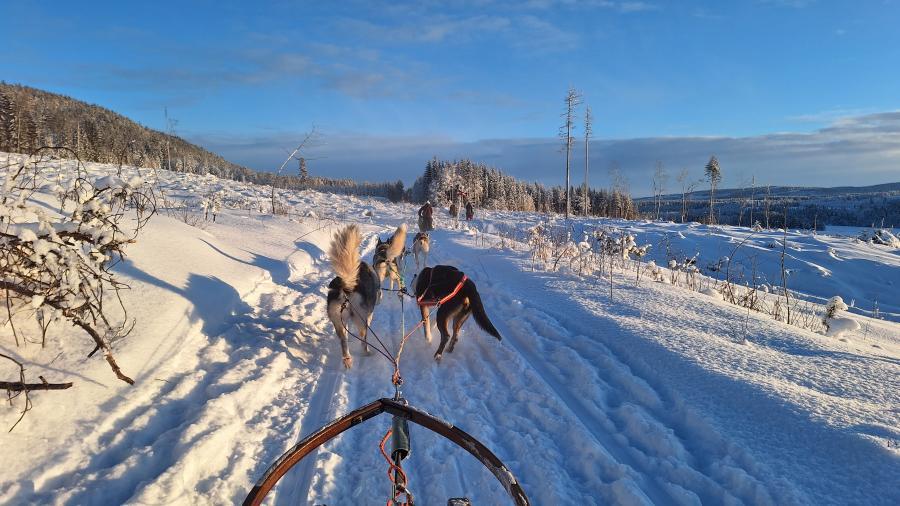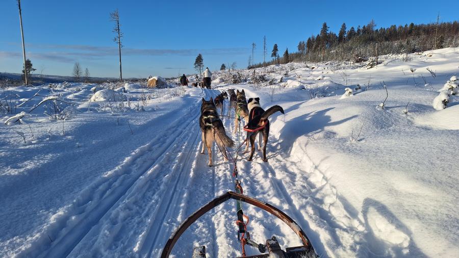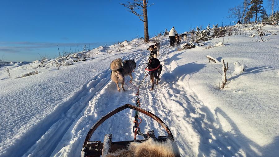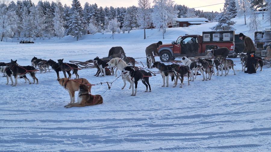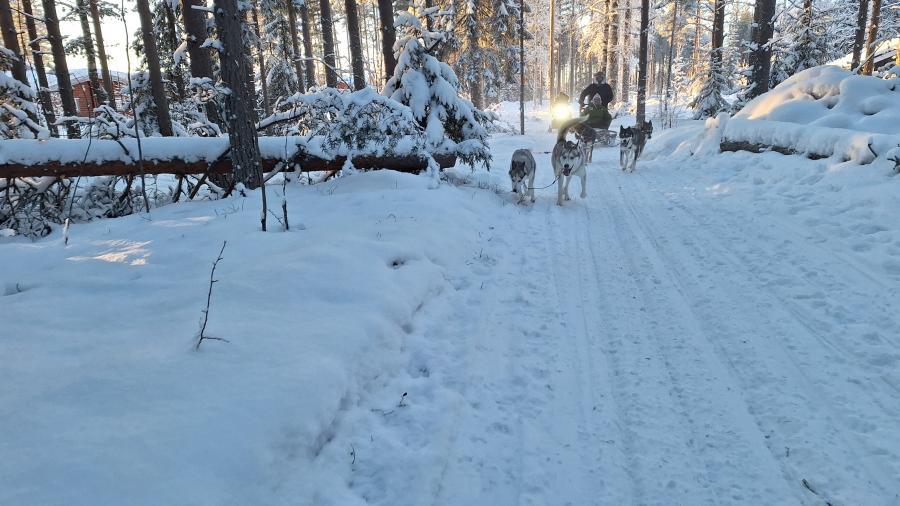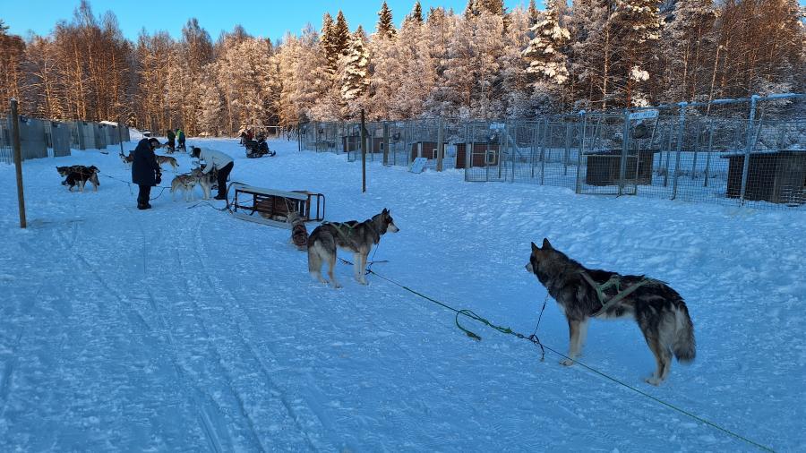 6. Tag Nachmittags die Husky-Schlittenfahrt - 5 Huskies und ein Schlitten